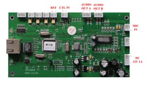 EVA-D901是一塊ARM+DSP構(gòu)架,專注于網(wǎng)絡(luò)音頻傳輸?shù)目刂颇K,具有10/100M 以太網(wǎng)接口,可通過網(wǎng)絡(luò)進(jìn)行單向MP3音頻流和雙向語音傳輸。EVA-D901可直接與外部音頻功率放大器連接,組成網(wǎng)絡(luò)音頻廣播終端。也可直接接入麥克風(fēng),利用本機的3W音頻功放,組成對講終端。